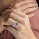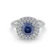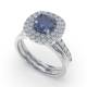 Cushion Blue Sapphire and Diamond Double Halo Shoulder Set Ring (SKU: SDRX4559BSC)
